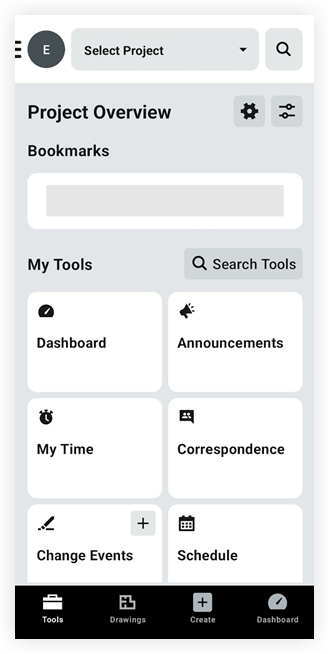 Pour accéder aux items du projet et personnaliser votre écran Aperçu du projet dans l'application Procore Android.