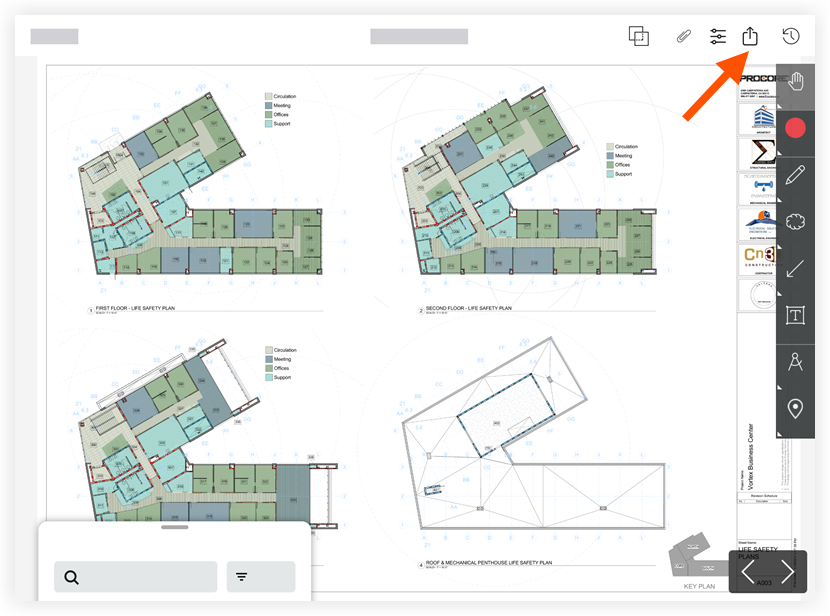 Pour partager des plans avec d'autres utilisateurs dans l'application Procore iOS .